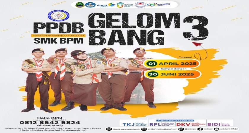 Penerimaan Peserta Didik Baru tahun 2025/2026 gelombang 3 dimulai tanggal 1 April 2025 sampai dengan 30 Juni 2025, penerimaan ini merupakan penerimaan peserta didik baru untuk gelombang terakhir.